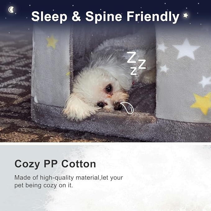 - Strong & Comfortable Indoor Dog House: The enclosed dog bed structure is made of special sponge, sturdy and anti-collapse. Dog den features soft faux fur lining & PP cotton cushion. Suitable for all seasons with removable cushion for easy cleaning