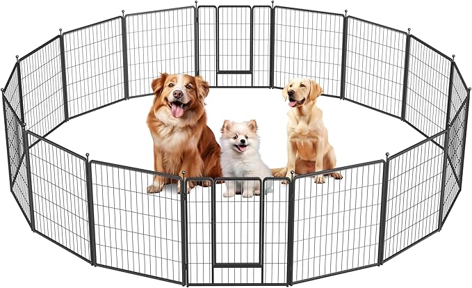 Simple Deluxe Dog Playpen Outdoor, Portable Dog Playpen for Travel, Camping, 32" Height 16 Panels Heavy Duty Dog Pen for Small/Medium Dogs, Black