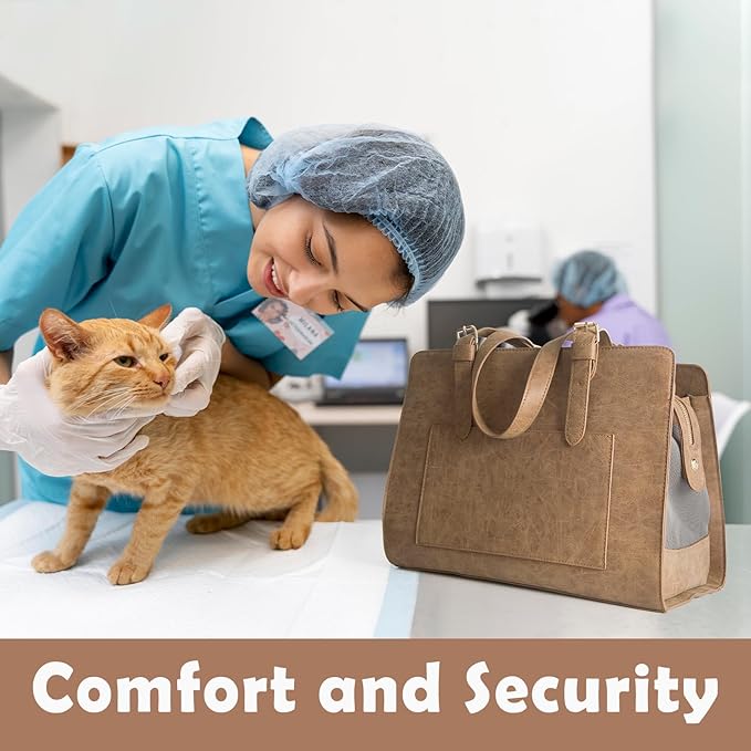 Stylish Pet Carrier Purse Leather Bag for Small Dogs Cats Puppy,Airline Approved Soft-Sided Carriers (Vintage Brown)