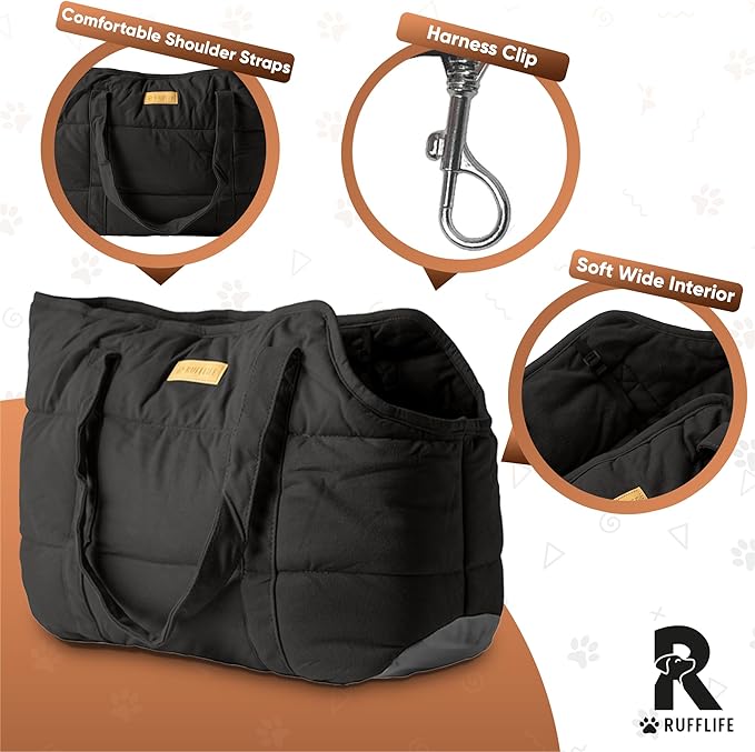 Dog Purse Carrier for Small Dogs, Cozy Plush Pet Carrier Purse, Secure Harness Clip, Lightweight Dog Tote Bag Carrier for Small Dogs and Puppies (Black)