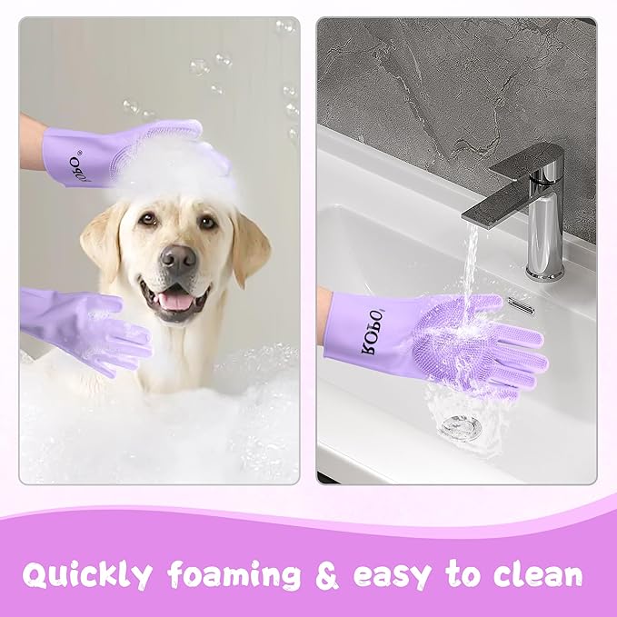 ROPO silicone gloves for pet grooming, multi-functional gloves for pet hair shedding, bathing, and massage (Purple)