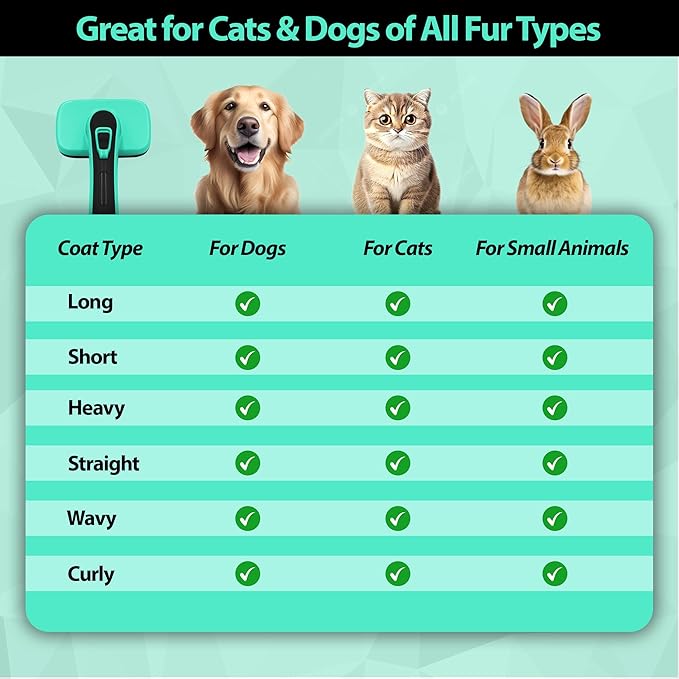 - 🐺 Dual-Action Design:Features a main brush and an additional comb for versatile grooming options.The main brush effectively captures and removes hair from the topcoat and undercoat.The additional comb is ideal for detangling knots and removing stubborn mats.Offers comprehensive grooming and cleaning capabilities for all pet breeds and coat types.Helps you achieve professional grooming results at home, saving you money on frequent visits to the groomer.