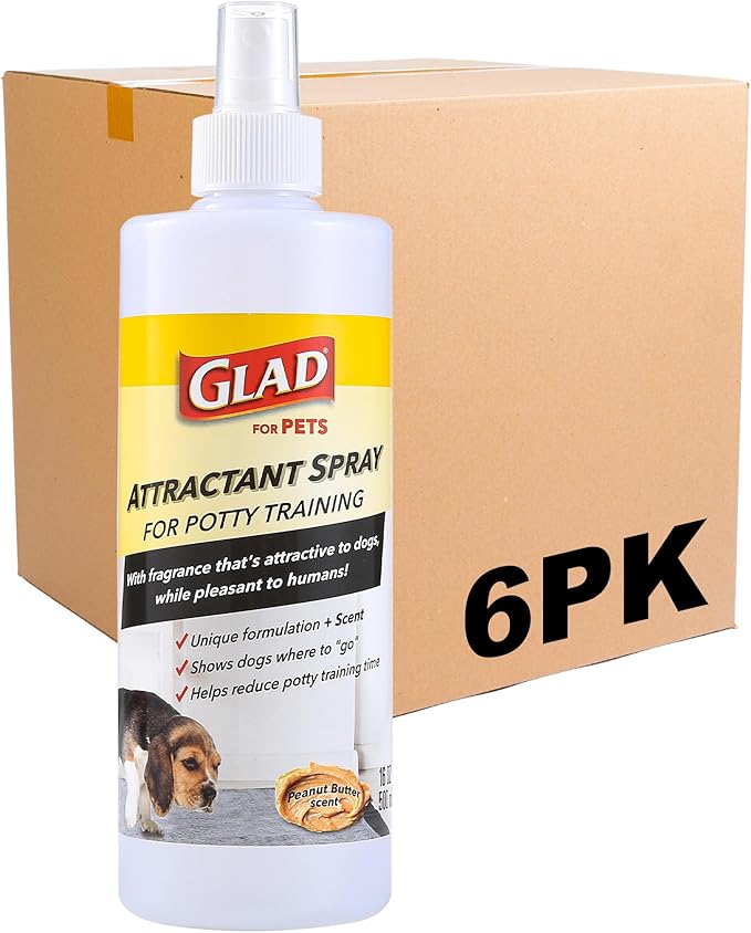 Glad for Pets Attractant Spray for Potty Training Dogs & Puppies, Peanut Butter Scent - Effective Dog Potty Training Spray, Indoor or Outdoor Dog Potty Training Aid, 16oz - 6 Pack