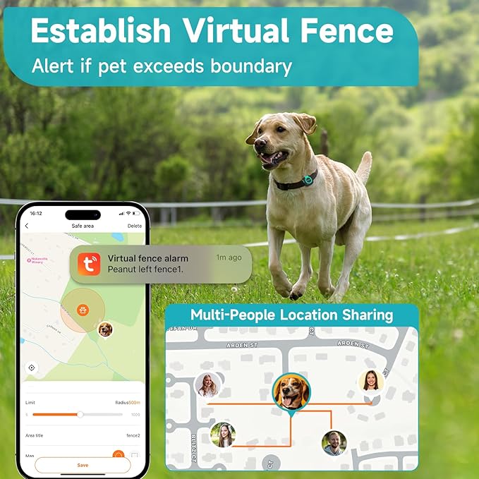 - Real-Time Location at Your Fingertips: Never lose track of your pet again. With the Woyamay GPS dog tracker, monitor your pet's exact location in real-time. Refresh tracking with one tap and use navigation to find your pet quickly. Set safe zones with the virtual fence, and receive automatic alerts if your pet leaves the designated area