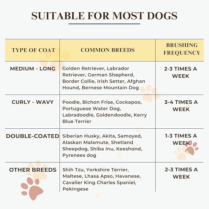 - 🐶Ideal for Thick, Curly Coats: Perfect for dogs with long, thick, or curly coats such as Poodles, Goldendoodles, Labradoodles, and other similar breeds (Portuguese Water Dog, Bichon Frise, Havanese, Cockapoo, Cavapoo, German Shepherds, French Bulldogs, Collies, and Samoyeds), ensuring a smooth and tangle-free coat.