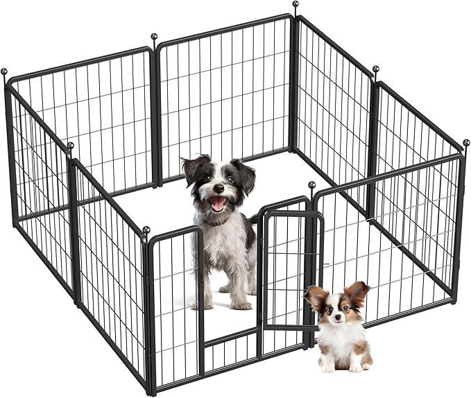 - 【Easy Assemble & DIY Shapes】Each panel is a separate piece. The panels could be assembled in just a few minutes without tools. You could DIY the dog pen to any shape you need, like square, rectangle, round, etc according to your house, garden or lawn.