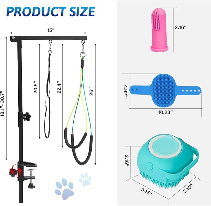 - ๐๐ฎ๐ฌ๐ญ๐จ๐ฆ๐ข๐ณ๐๐๐ฅ๐ ๐๐๐ข๐ ๐ก๐ญ ๐๐๐ฃ๐ฎ๐ฌ๐ญ๐ฆ๐๐ง๐ญ: Height of dog grooming arm can be adjusted from 18" to 35", and fits tables up to 2" thick. 2-knob of pet grooming stand design lets you easily adapt the height to different dog sizes - Small and Medium.
