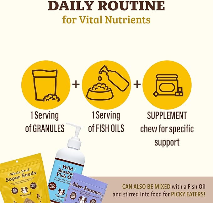- COMPLETE SENIOR SUPPORT: Keep your senior dog thriving with Super Seeds Granules, a natural multivitamin packed with over 60 vital nutrients. Unlike synthetic supplements, our blend of real superfoods, including flaxseeds and pumpkin seeds, delivers comprehensive nutrition to aging dogs. This holistic dog nutrition approach supports skin and coat health, boosts immune function, and promotes joint mobility, ensuring your senior dog enjoys a vibrant, healthy life.
