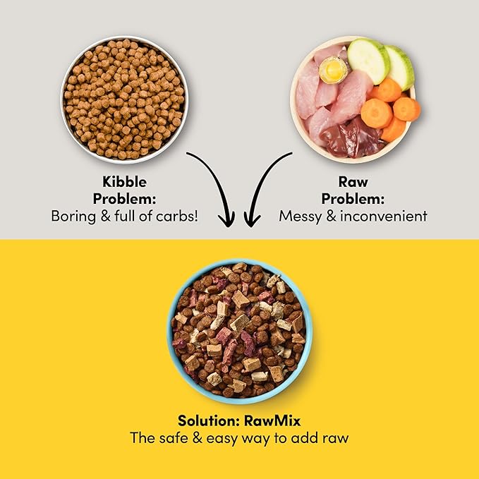 - IT’S RAW, MADE EASY! | The easy and safe way to add raw to your dog’s diet. RawMix33 is a tasty blend of 33% freeze dried raw lung, tripe, heart, liver, and spleen combined with 67% high protein meat bites