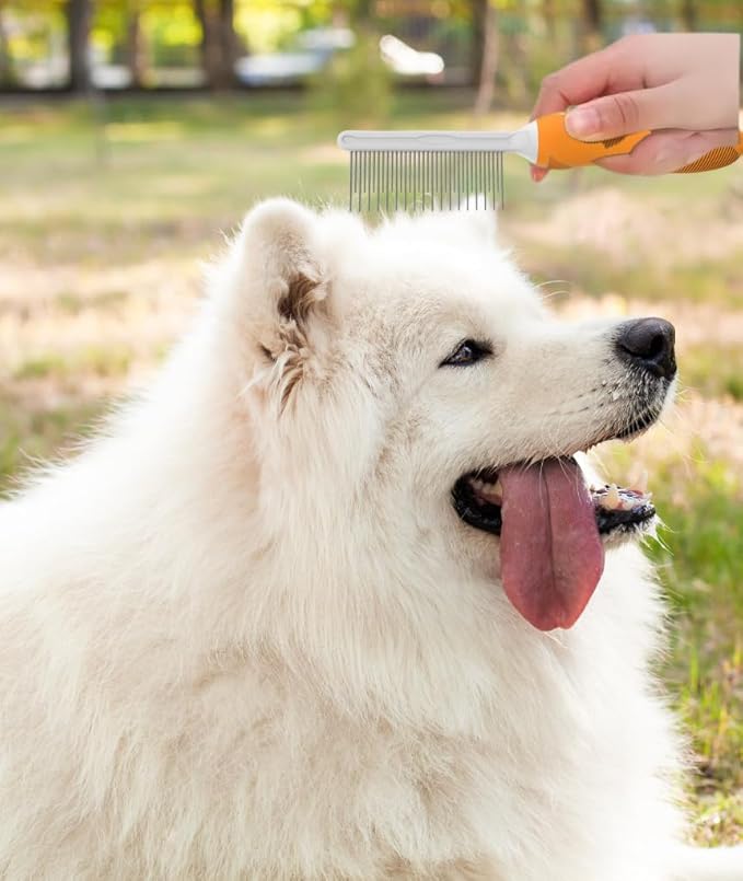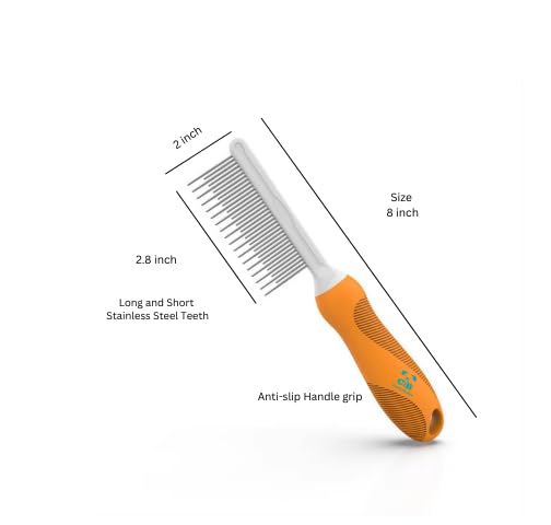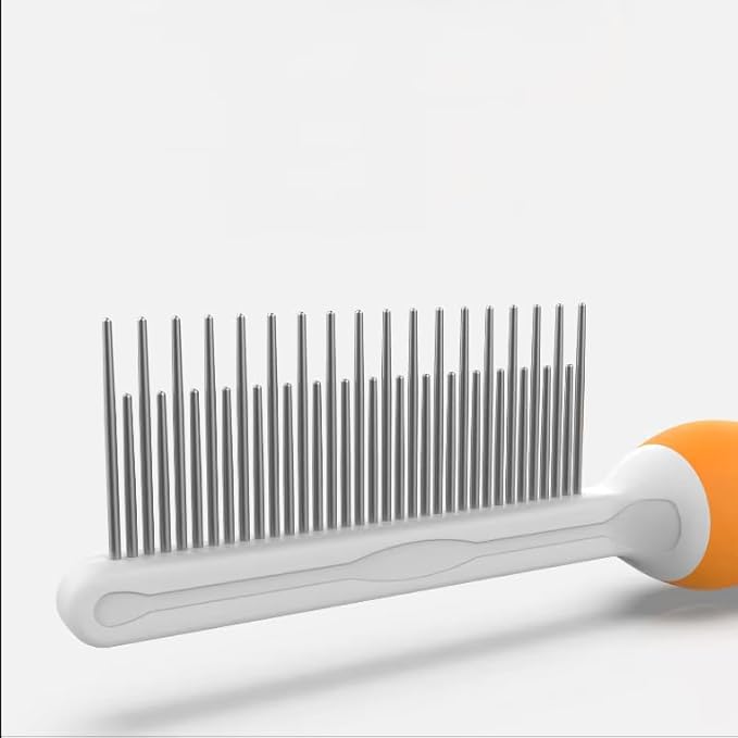 - Dual-Tooth Design: Stainless steel comb with short and long teeth for dematting and detangling long, curly or silky pet hair.