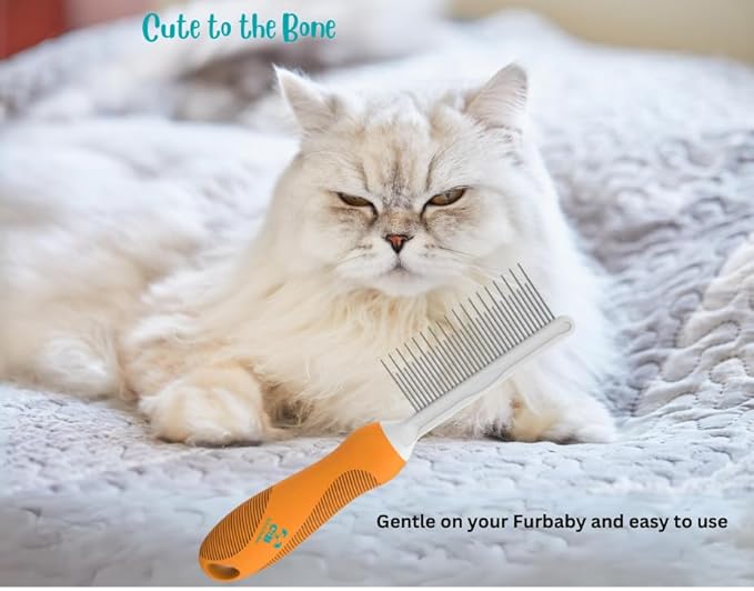 Cute to the Bone Pet Grooming Comb for Long, Curly or Silky Hair Dog and Cat, Stainless Steel Teeth for Dematting and Detangling, Safe for Home Use, Orange