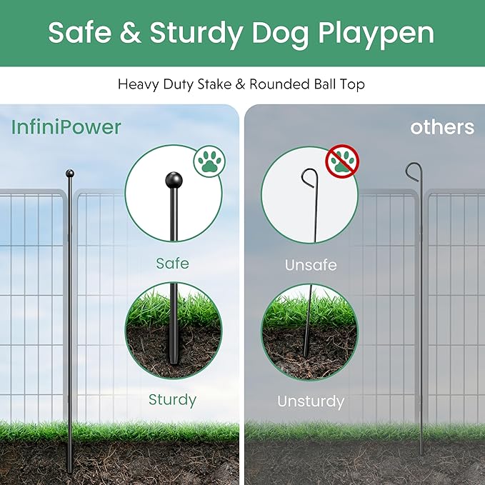 - 【Foldable & Easy to Carry】InfiniPower dog play pen could be disassembled into a flat size for space saving and easy carrying, perfect for travel, RV camping or play in the yard. Puppy playpen provides a comfortable and safe space for your small dogs.