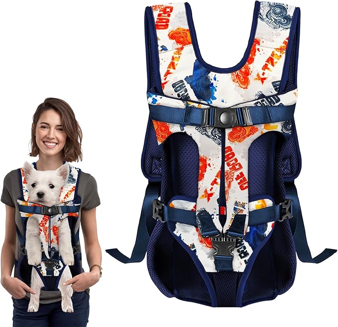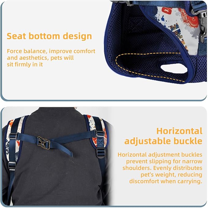 - Ergonomic Shoulder Straps: The dog front backpack carrier features extra-wide, thick shoulder pads to prevent tightness. It has 2 adjustable horizontal straps to secure the carrier and prevent slipping. The ergonomic design distributes weight evenly, minimizing shoulder pain while ues the dog backpacks