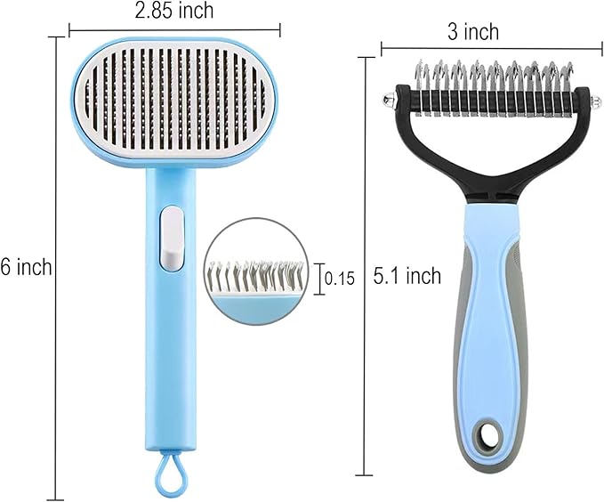- 【Dog Brush for Shedding】With a dual-sided design, use the wide sided to tackle stubborn mats and tangles, and the dense side to thin out and deshed your pet's fur. Undercoat rake for dogs are designed with an ergonomic handle, and the lightweight, comfortable, non-slip rubber handle prevents the dog brush from moving around as you groom your pet.