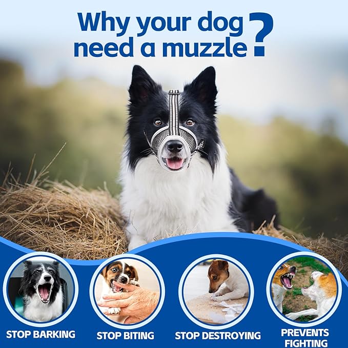 - Ultra-Huamanized Design : Xipdoger dog muzzle use soft, breathable, waterproof net that protects your dog's nose from chafing. And dog muzzle use anti-pinch buckle, which can protect your dog's fur well. The universal velcro design can fit your dog's mouth well. we adding a nylon strap around the dog's head,that Prevents dogs from breaking free and improves wearing comfort.Reflective strips surround the entire dog muzzle cover to keep your dog safe day and night.