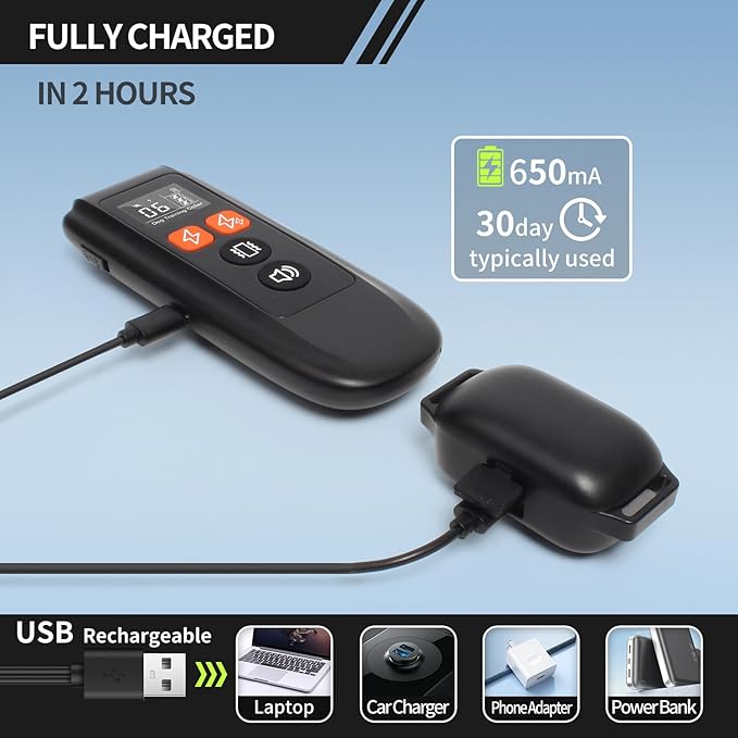 - 【Long-lasting Battery Life】Equipped with a USB rechargeable battery, our anti bark collars for dogs can last up to 30 days on a single charge. This bark collar with remote ensures consistent training without the hassle of frequent recharging, making it both convenient and reliable for everyday use.