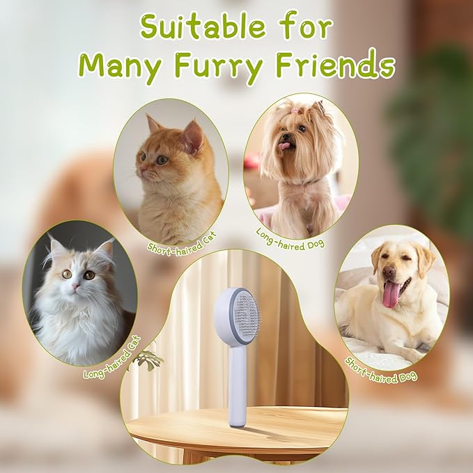 - 【Self-Cleaning Design】Our cat hair remover has a self-cleaning function. After combing, just press the cleaning button and the hair will fall off the bristles easily, making cleaning effortless and the hair will not be scattered everywhere.