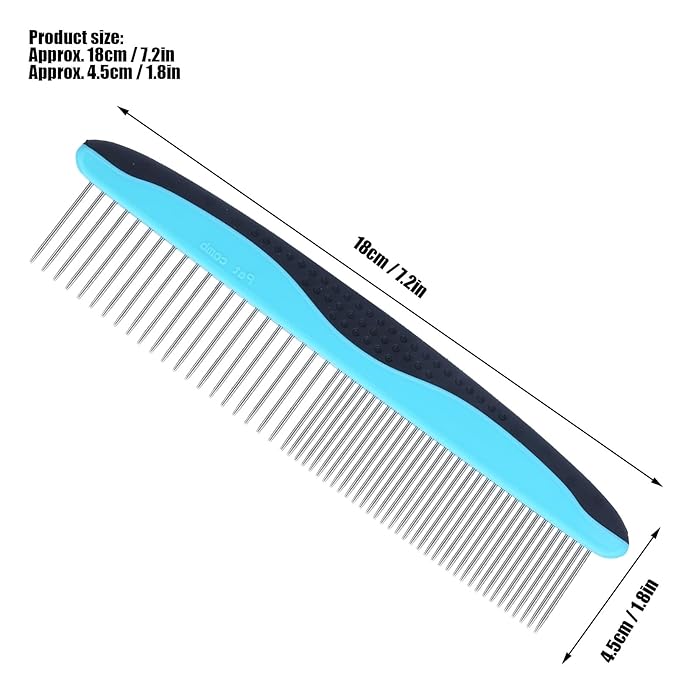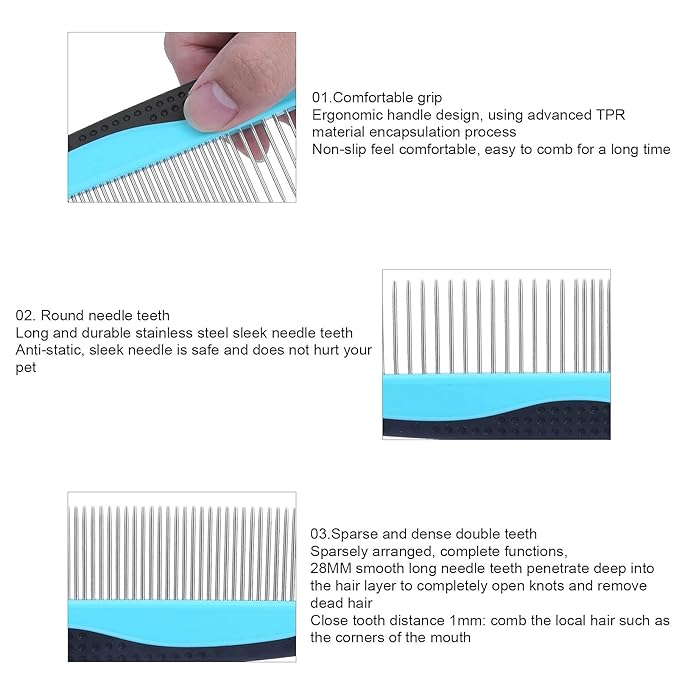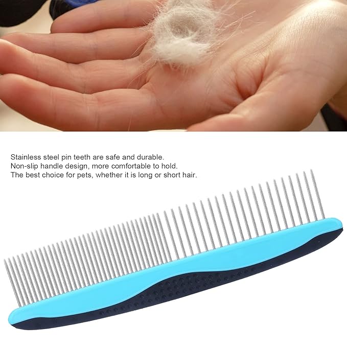 - [ERGONOMIC DESIGN] This pet comb features a round needle that gently massages the pet's skin and a non-slip handle for comfortable use.