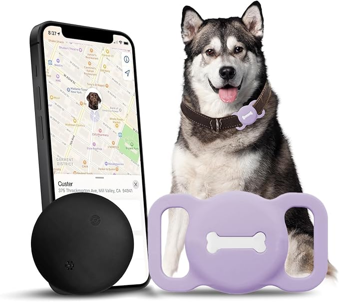 Pet Tracker for Cat, Smart Pet Location Tracker with Case, Smart Item Finder, MFi Certificated Tracking Device, No Monthly Fee, Works with Find My (iOS Only) (Purple Small)