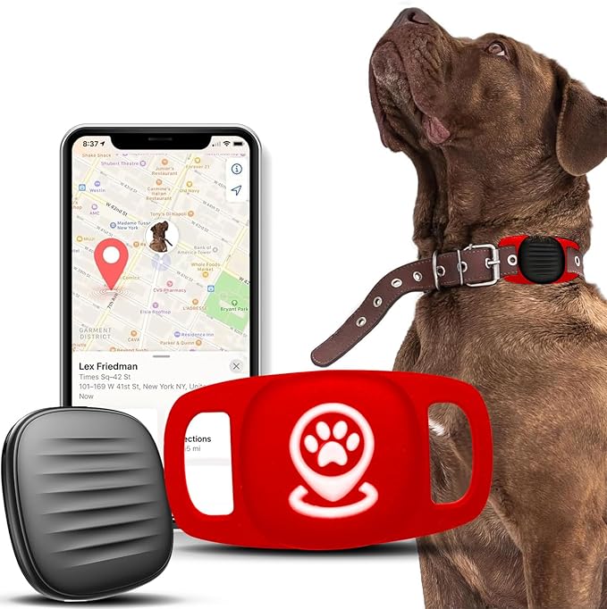 Pet Tracker for Dog, Dog Tracker Smart Pet Location Tracker with Tracker Holder, Item Finder MFi Certificated Tracking Device, No Monthly Fee, Works with Find My (iOS Only) Not GPS Tracker Red