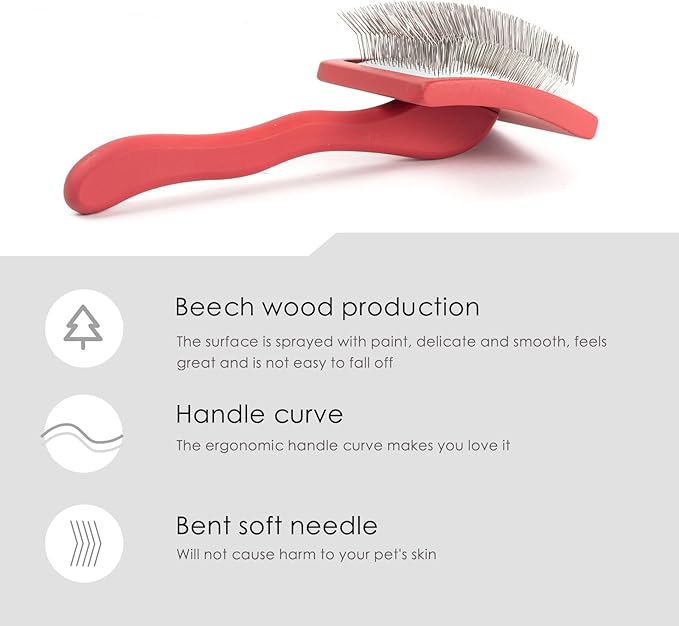 Long Pin Slicker Brush for Dogs (Goldendoodles, Labradoodles, Poodles) and Long Hair cat, Best Grooming Brush for Small Animals ,for Grooming Pet Hair, Beech Wood