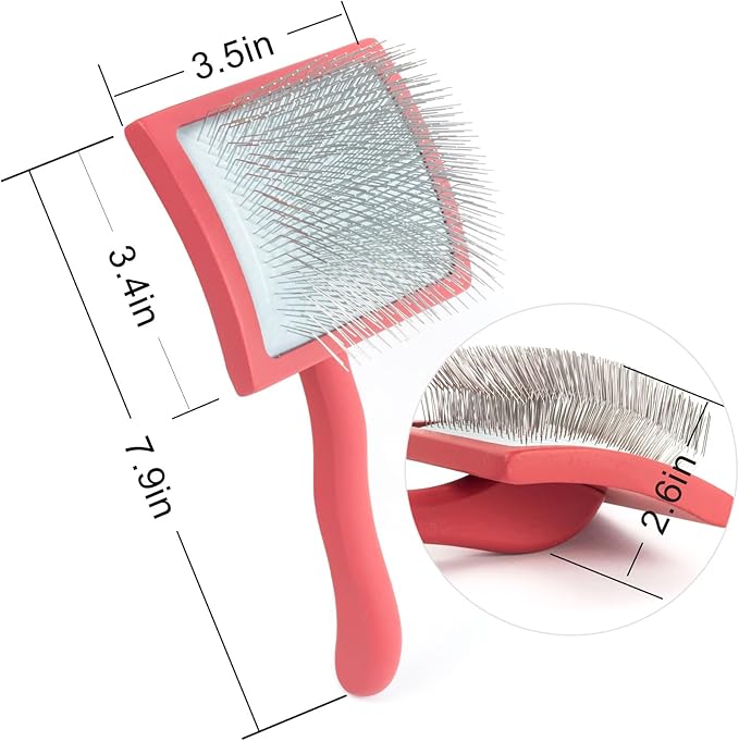 - The large Slicker brush : The brush is 4 inches wide and 8.3 inches long is perfect for combing medium to long curly-haired pets