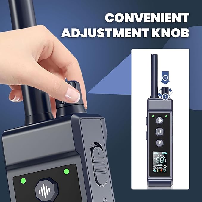 - 【Shock collar for dogs with Flash Light】 4 light modes of solid white light & flashing lights on receiver collar,which is super awesome for camping or night walks to keep track of the dog , just remotely turn the light on makes it easy to spot your dog,it is decently bright which makes it easy to spot your dog from a far distance even in the woods.if you dog like to take off into the woods at night,or love to hide at pee time before bed,this collar will super helpful for you