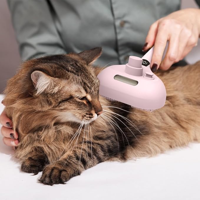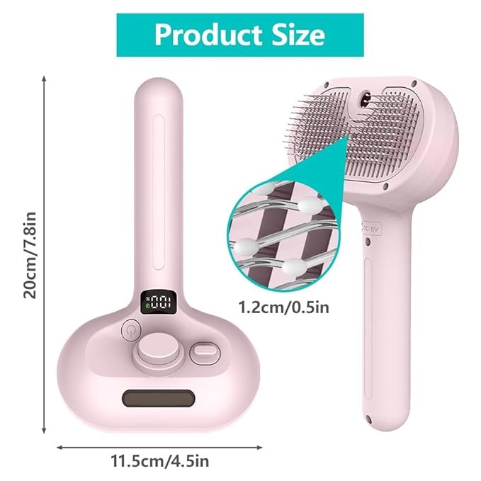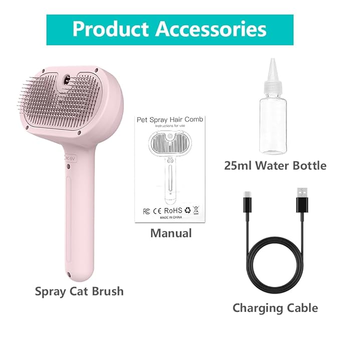 - [UNIQUE SPRAY DESIGN] Revolutionize your pet grooming routine with the Spray Pet Brush for Shedding. Featuring a built-in spray container, it allows you to moisten your pet's coat as you groom, reducing shedding and ensuring a smooth, tangle-free finish.