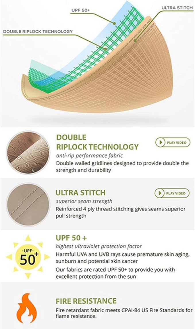 - UPF 50+, water resistant, CPAI-84 fire retardant