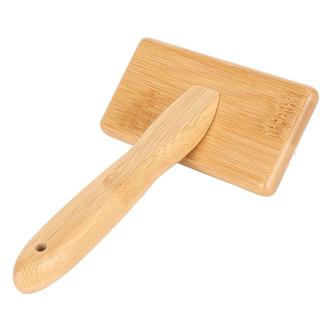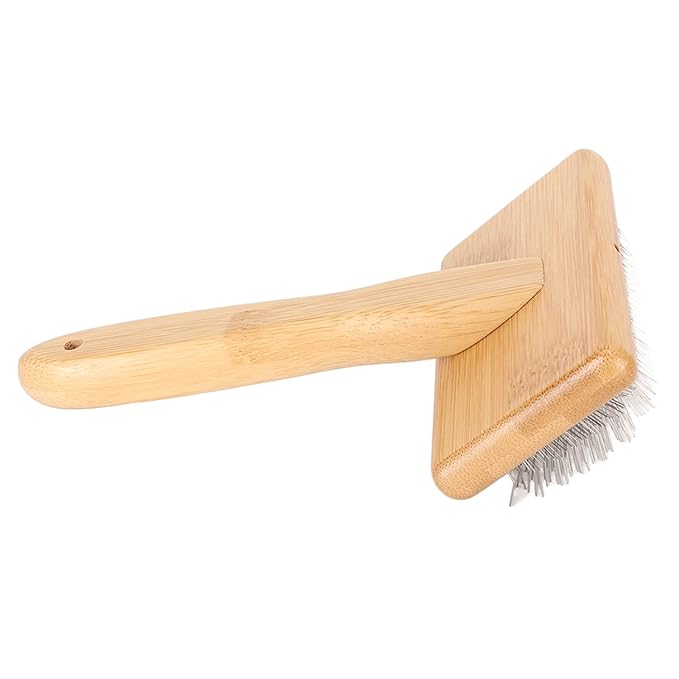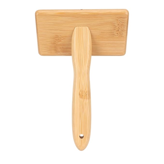Macrame Slicker Comb with Hole Cushion Finely Polished Bamboo Cleaning Brush Sheepskin Wool Stainless Steel Pins Carding Rug Fur Brushes Long Prongs Pet (13.7x20.3x5.2cm