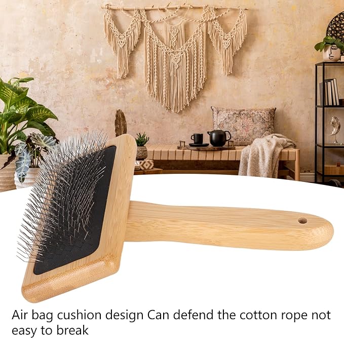 • Superior Design: Featuring an cushion design and finely polished bamboo handle, this Macrame Slicker Comb provides a gentle brushing experience for your pet.