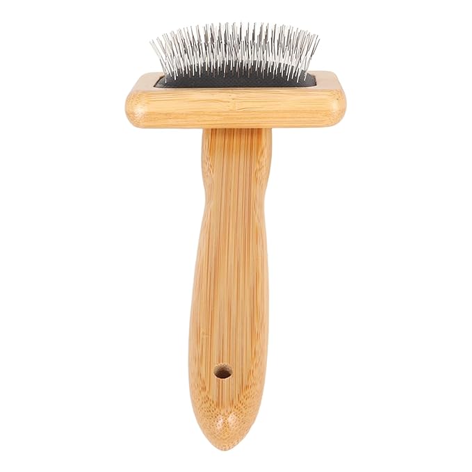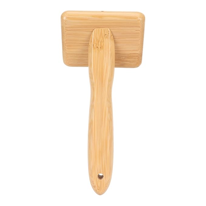 Macrame Slicker Comb with Hole Cushion Finely Polished Bamboo Cleaning Brush Sheepskin Wool Stainless Steel Pins Carding Rug Fur Brushes Long Prongs Pet (12x15.2x4.5cm /