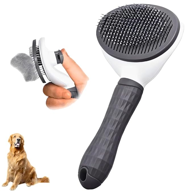 The pet grooming brush works wonders on my golden retriever’s thick coat. It removes loose fur effortlessly and my dog actually enjoys being brushed now.