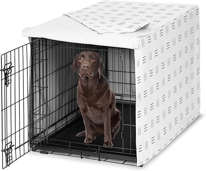 - This durable and stylish dog crate cover is the best way to create a comfortable and cozy space for your four legged friend with a protective canvas fabric that securely covers the top of your pets cage for a dark and tranquil crate at all times. Give your puppy a space where they can rest and relax after a long day of playing or secure flaps with our hook and loop closure design to allow your pet to enter and exit as they please.
