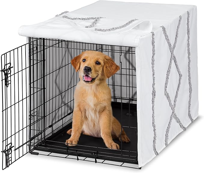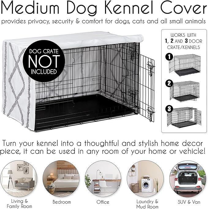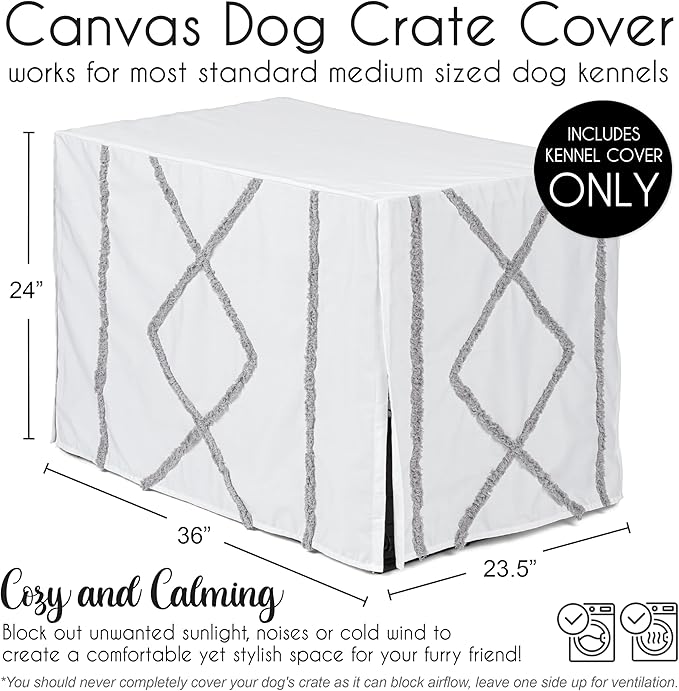 Sweet Jojo Designs White and Grey Bohemian Boho Chic Boy Girl Gender Neutral Unisex Dog Crate Cover – Kennel Covers 36 Inch Pet Cage Medium Farmhouse Shabby Designer Modern Elegant Geometric Textured