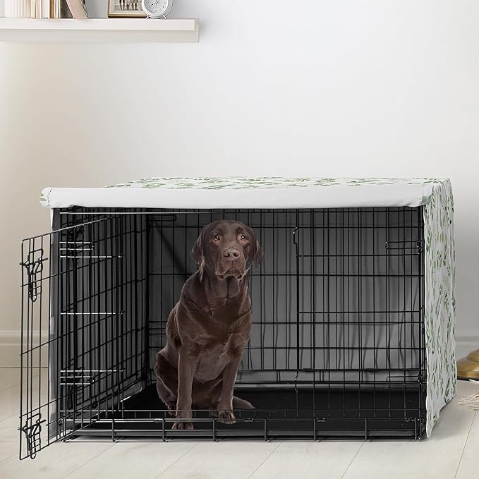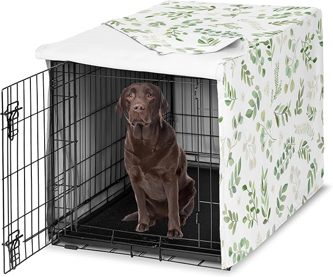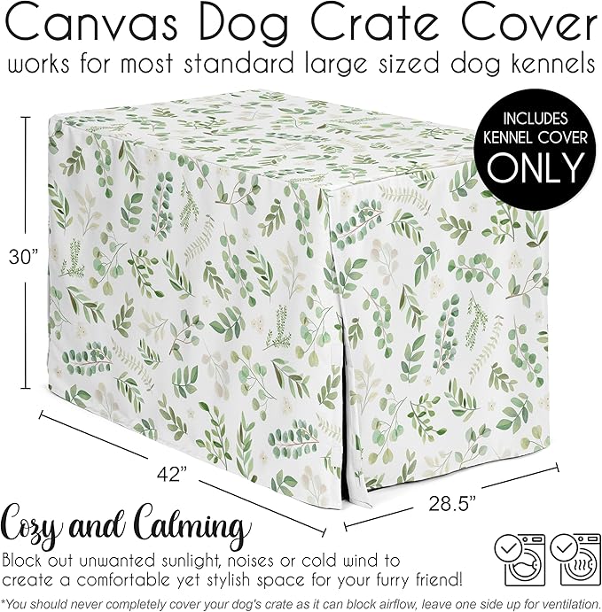 Sweet Jojo Designs Green Boho Floral Leaf Dog Crate Cover – Kennel Covers for 42 Inch Pet Cage Medium/Large - Neutral Sage White Bohemian Watercolor Botanical Flower Woodland Tropical Garden Nature