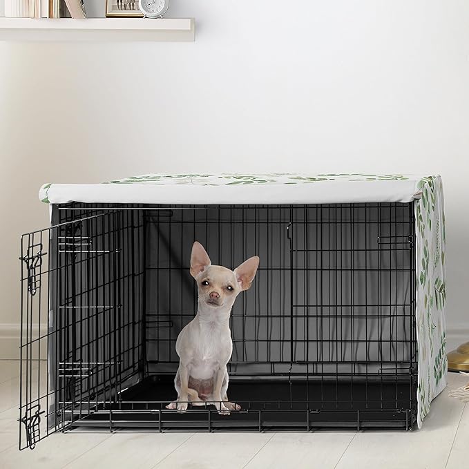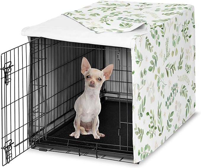 Sweet Jojo Designs Green Boho Floral Leaf Dog Crate Cover – Kennel Covers for 24 Inch Pet Cage Small - Neutral Sage White Bohemian Watercolor Botanical Flower Woodland Tropical Garden Nature