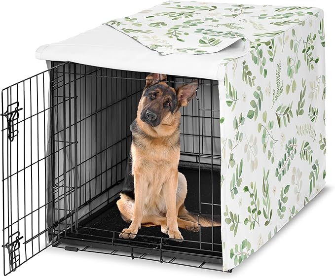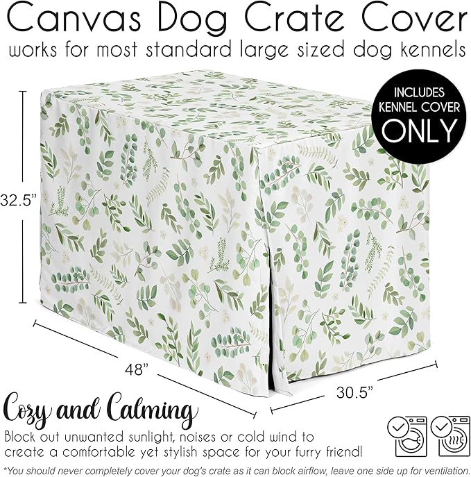Sweet Jojo Designs Green Boho Floral Leaf Dog Crate Cover – Kennel Covers for 48 Inch Pet Cage Large - Neutral Sage White Bohemian Watercolor Botanical Flower Woodland Tropical Garden Nature