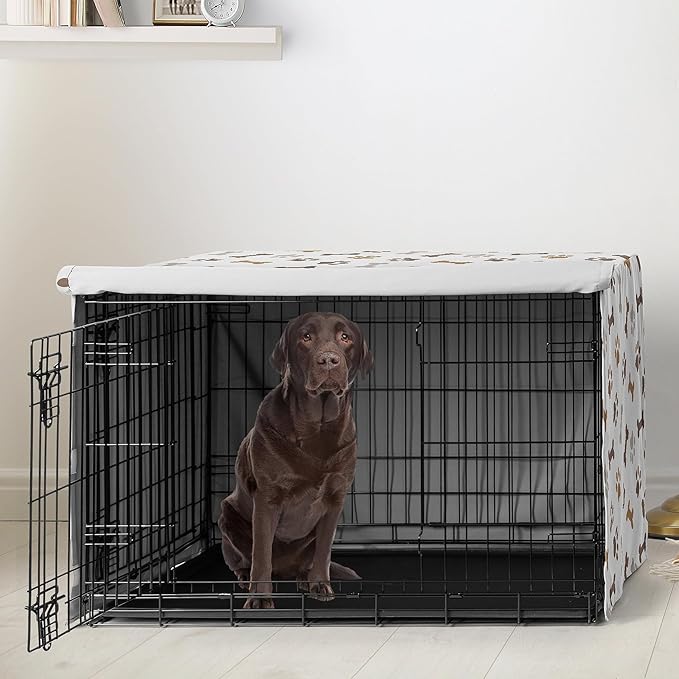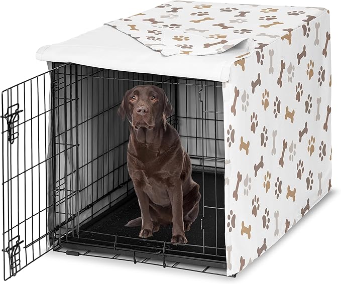 Sweet Jojo Designs Bone Paw Print Dog Crate Cover – Kennel Covers for 42 Inch Pet Cage Medium/Large - Neutral Grey Taupe Brown Modern Off White Gray Tan Puppy