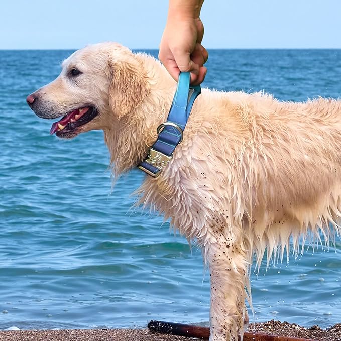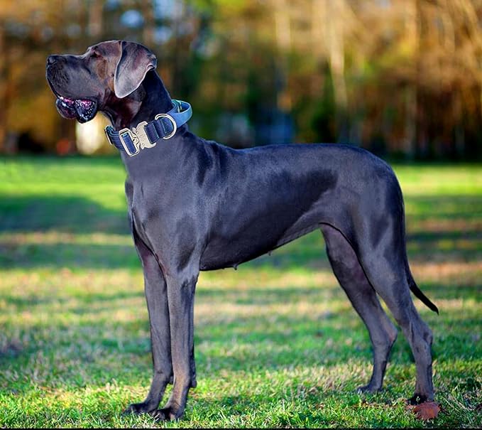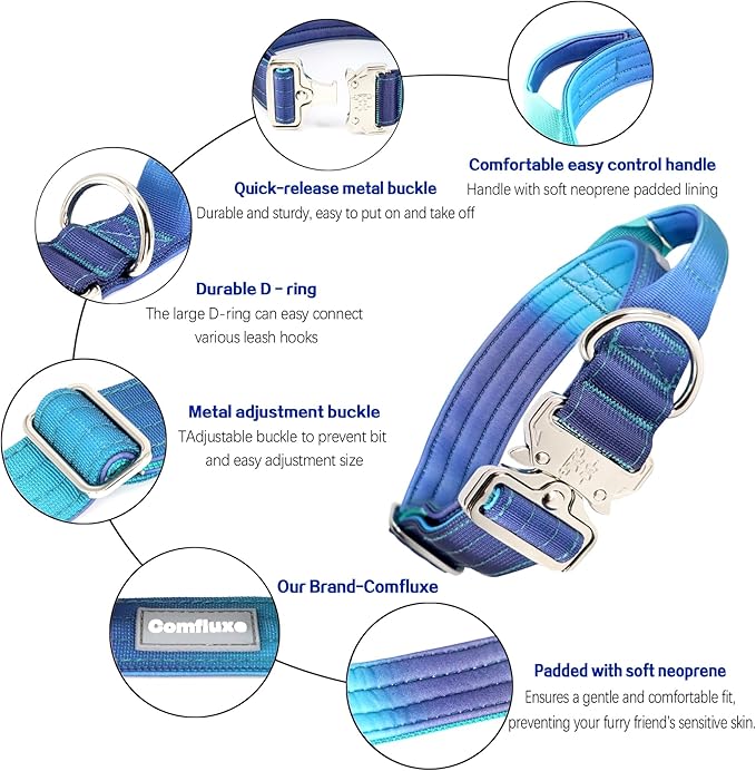Tactical Military Dog Collar, Strong Heavy Duty Dog Collar, Wide Thick Dog Collar with Handle, Soft Neoprene Padded Collar with Quick Release Metal Buckle for Medium Large Dogs (Blue, M)