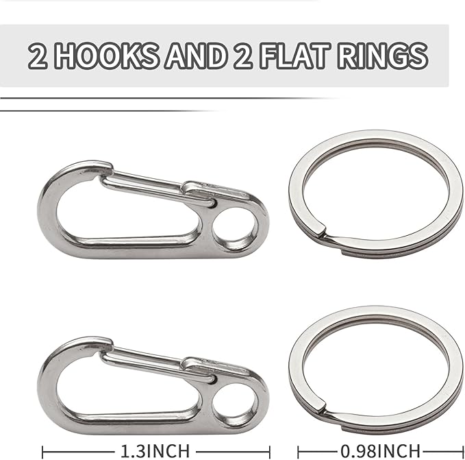 - WHAT YOU GET:2 pcs Stainless Steel Carabiner dimension: 3.2cm (L),2.8g,plus 2pcs Stainless Steel Key Ring with 25mm
