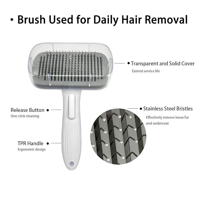 - One-click Cleaning Button:Cat brush with release button.After brushing your pet,press the button to easily remove hair from dog grooming brushes