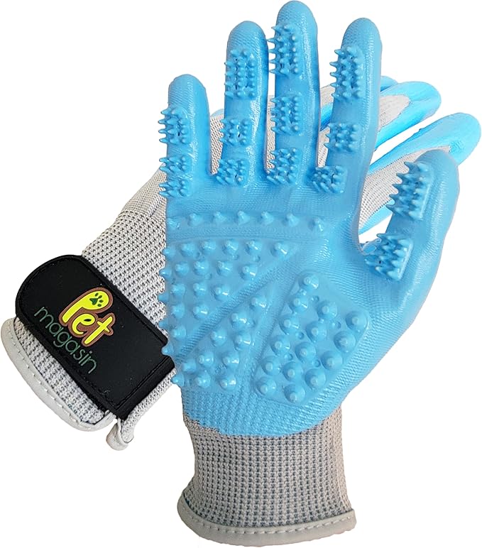 PET MAGASIN Dog Grooming Gloves for Gentle Deshedding and Bathing (Blue, Large)