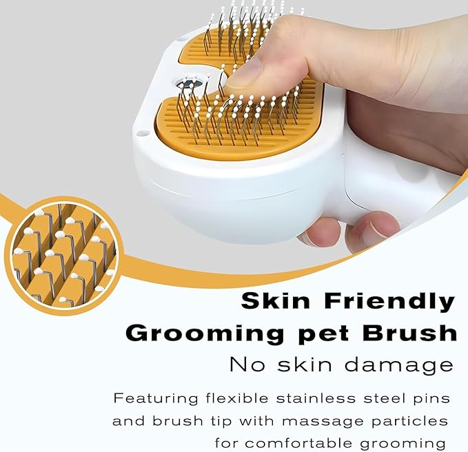 - 【Sturdy, Safe and Skin-Friendly Cat Brush】: This cat steam brush are made of high-quality ABS plastic for the casing and stainless steel for the bristles. And, we've wrapped the bristles in a protective gel to ensure effective removal of dead skin and loose hair while protecting your pet's skin from damage. You can add conditioner or softener to the spray when you want to enhance the softness and shine of your cat's coat