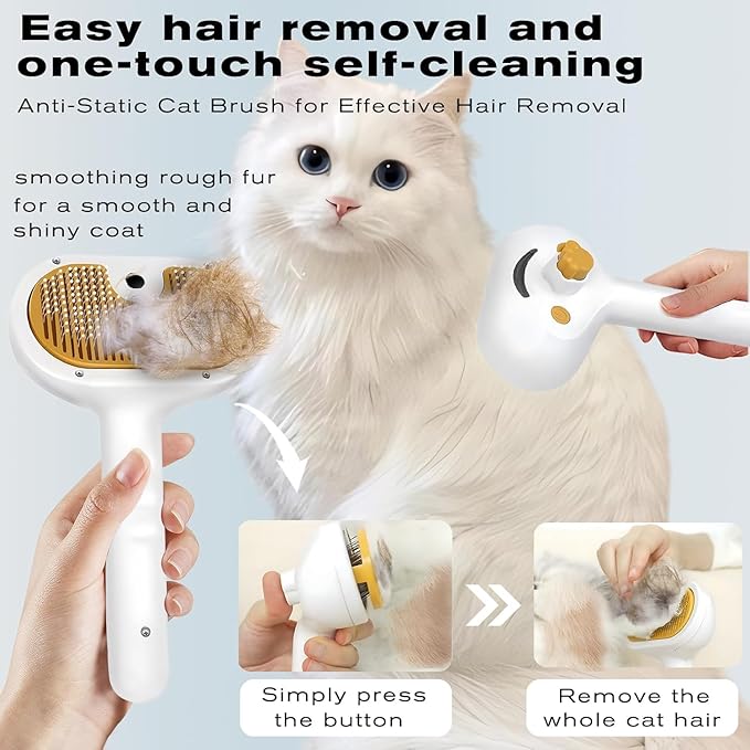 - 【3 in 1 Cat Steamy Brush】: Multi-functional pet grooming tool that combines the functions of hair removal, cleaning and massage. While removing hair, clean dirt from hair and skin. Let you don't need to worry about cleaning your beloved pet every day. Note: Our cat brush only converts water into spray and does not heat it