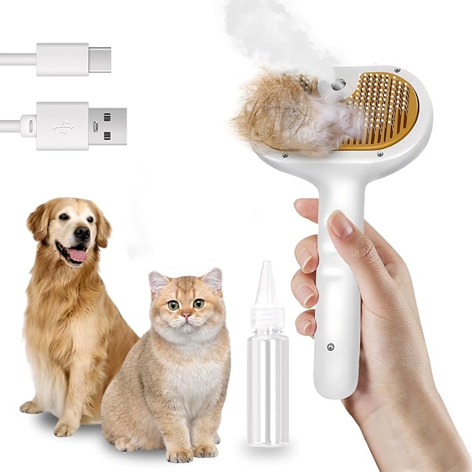 Pet Steam Brush for Dog & Cat 3-in-1 Spray Hair Removal Comb Steam Brush for Shedding & Grooming