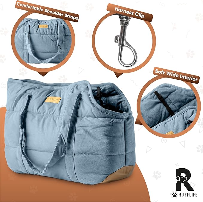 Cozy Plush Pet Carrier Purse - Secure Harness Clip, Lightweight Tote Design for Small Dogs and Puppies (Light Blue)