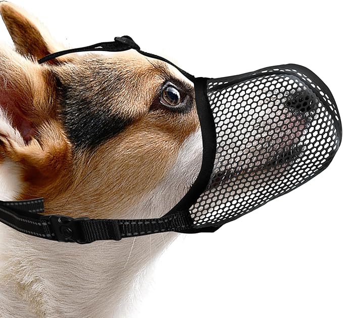 - 【Easy-using and Safer Dog Muzzle】Our soft muzzle for small sized dog is easy to wear. Adjust the strap to fit your dog, ensure it fits perfectly and stay securely on your dog's snout. This also has a loop at the bottom that you can slide the collar through for more security. The reflective nylon straps can be seen even in low visibility conditions or dark night, making it easier to control dogs and ensuring the safety of walking at night.