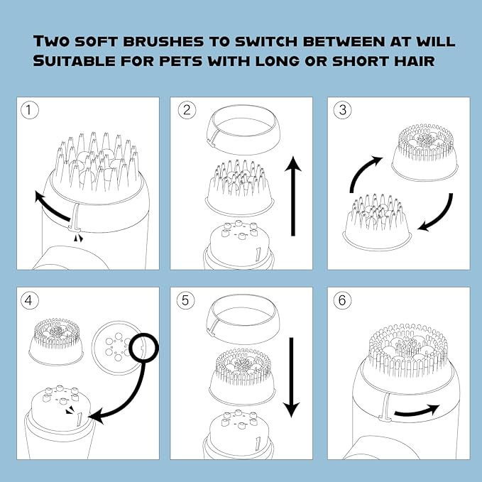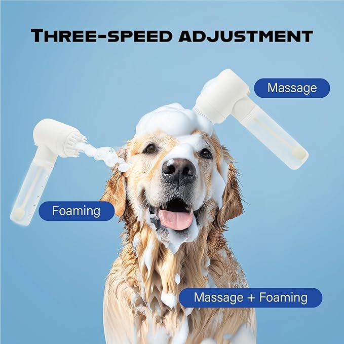 - 【Easy to Use】The lightweight handle design of this dog brush allows you to hold it comfortably when bathing your dog. Just click lightly to switch between three modes: foaming, massage, and foaming massage. It comes with two silicone brushes that can be replaced at any time, suitable for pets with different hair lengths.