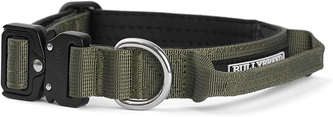 BULLYBREED Premium Dog Colar with Handle, Heavy Duty Dog Collar, Tactical Dog Collar, Quick-Release Metal Buckle, Puppy Collar, Dog Collar for Small Dogs, Dog Collar for Medium Dogs (Green, Small)